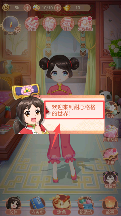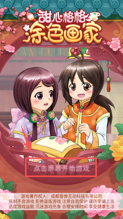 1、点击游戏启动界面的 “点击屏幕开始游戏” 区域,进入甜心格格的游戏世界。