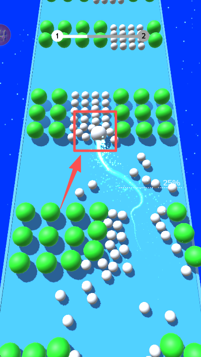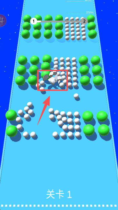 3、操控白色弹珠撞击弹珠堆,优先消除白色弹珠,推进当前关卡的进度。