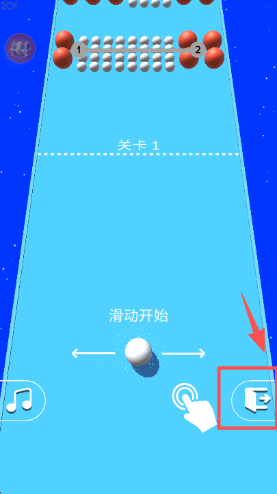 4、进入关卡 2 界面后,滑动 “滑动开始” 区域,启动白色弹珠开始本关的撞击挑战。
