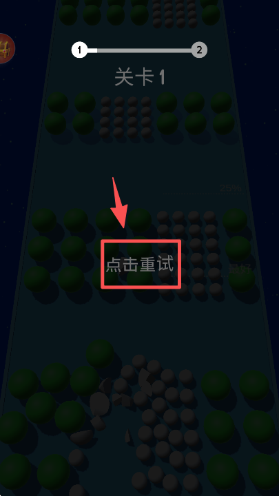 4、若本次关卡挑战失败,点击界面中的 “点击重试” 按钮,重新开启关卡 1 的弹珠撞击挑战。
