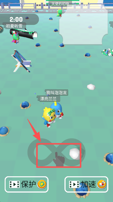 2、进入对局后,按照提示滑动屏幕,操控泡泡龙角色在场景内移动。
