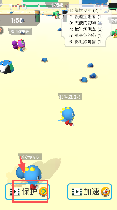 3、在对局中,点击 “保护” 按钮,可触发对应的保护效果,辅助泡泡龙推进游戏。