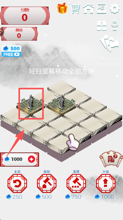 3、在游戏界面中,轻扫屏幕来移动全部方块,按提示调整方块的位置。