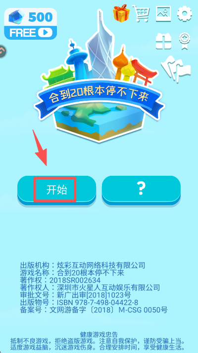 2、进入游戏启动页后,点击 “开始” 按钮,进入游戏的核心操作界面。