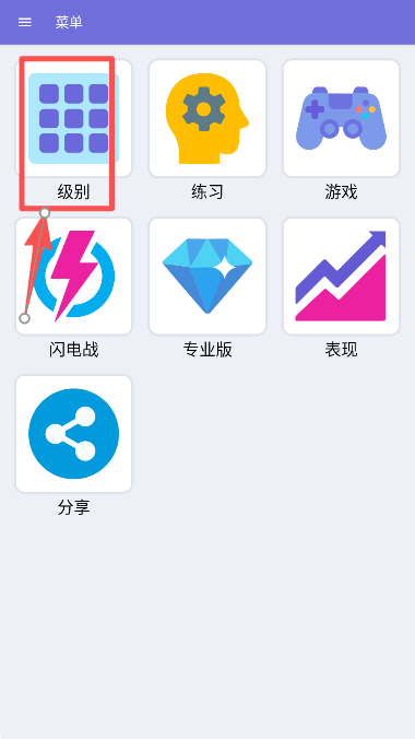 1、在游戏菜单界面,点击 “级别” 选项,进入关卡选择页面,准备选择对应的游戏级别。