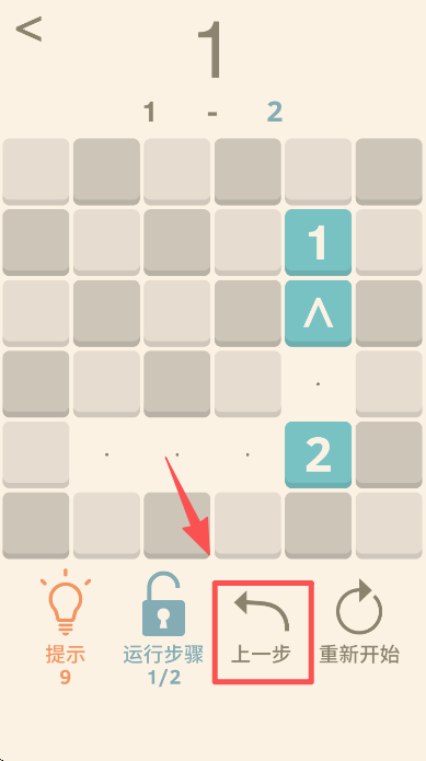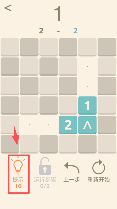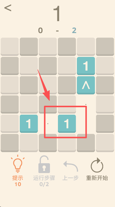 2、进入关卡 1 后,点击界面中的数字 “1” 方块,按解谜规则移动它来推进关卡进度。