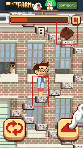 4、玩家的容错率非常的小当头顶上方的进度条逐渐的消失时会掉下去归零。