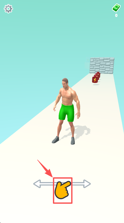 1、在游戏初始界面,按照提示左右滑动手指,控制肌肉男在赛道上移动,准备开始关卡。