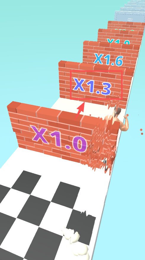 4、冲刺阶段选择标有 “X1.3” 的砖墙区域撞击,借助倍数加成来提升关卡结算收益。