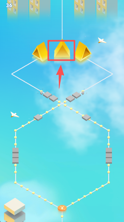 3、在路径类关卡界面,操控白块顺着连线移动,向界面上方被框选的黄色三角目标区域行进。
