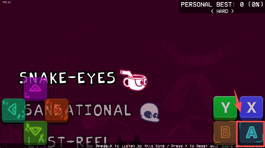 1、在曲目选择界面,点击对应按键确认选择Snake-Eyes的 Hard 难度,进入游玩环节。