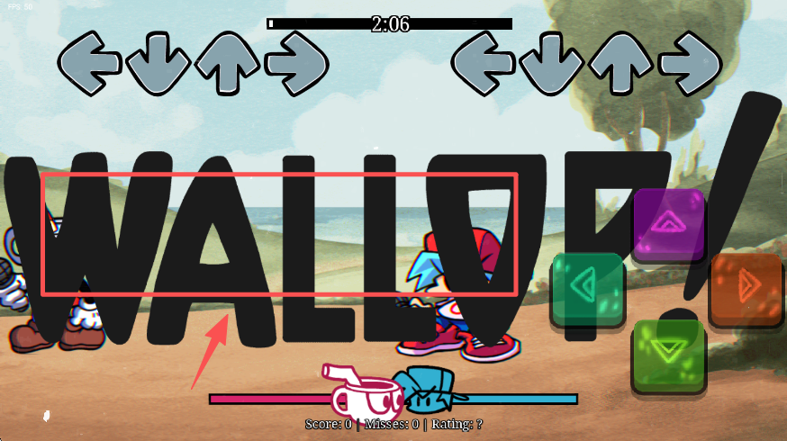 3、当界面出现 “WALLUP” 提示时,继续按节奏匹配按键,推进歌曲的游玩进程。