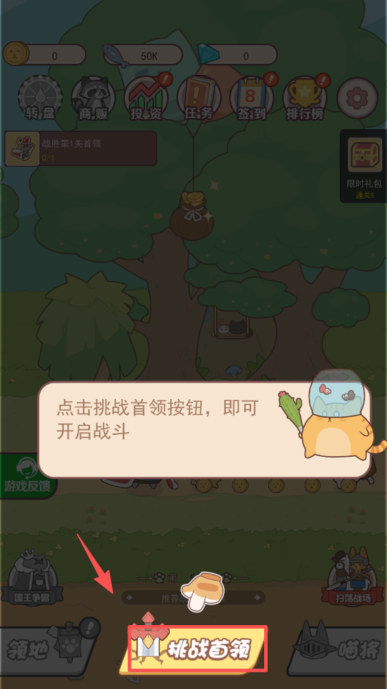 2、在主界面点击 “挑战首领” 按钮,开启与首领的战斗。