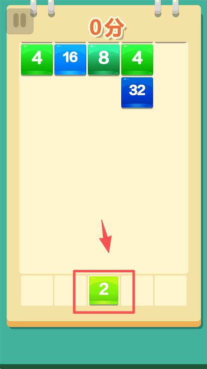 4、看到界面下方的数字 32 方块时,点击对应区域放置它,尝试与相同数字方块合并消除得分。