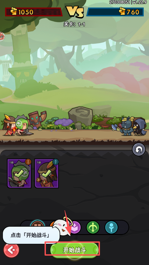 2、在战斗准备界面,点击“开始战斗”按钮进入战斗。准备你的队伍,迎接挑战。