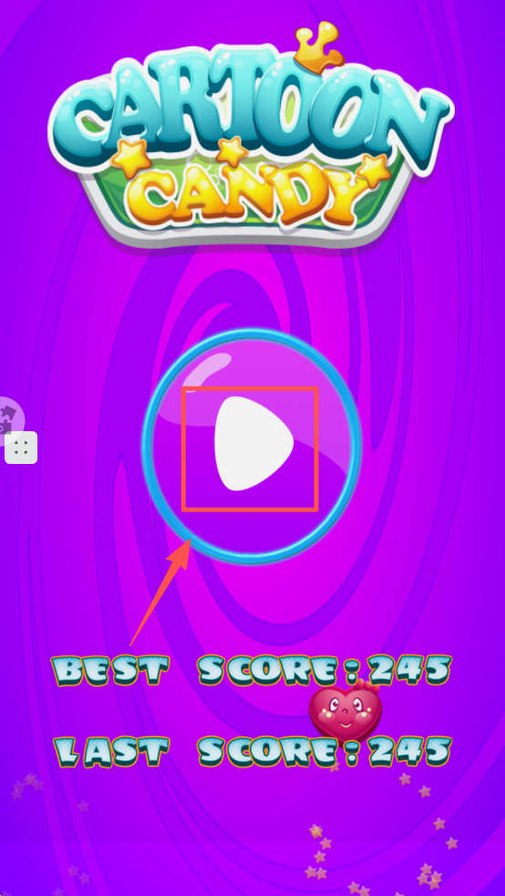 1、点击主界面的播放按钮,开始游戏,进入“Cartoon Candy”的甜蜜世界。