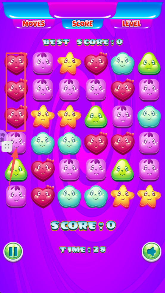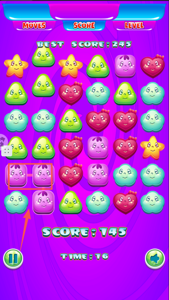 3、当成功匹配后,继续寻找并交换糖果以获取更高分数,注意时间限制。
