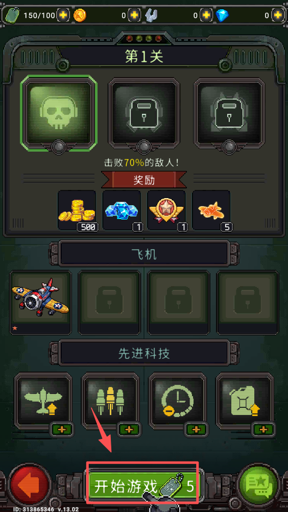 2、在关卡准备界面,点击“开始游戏”按钮,准备进入战斗。