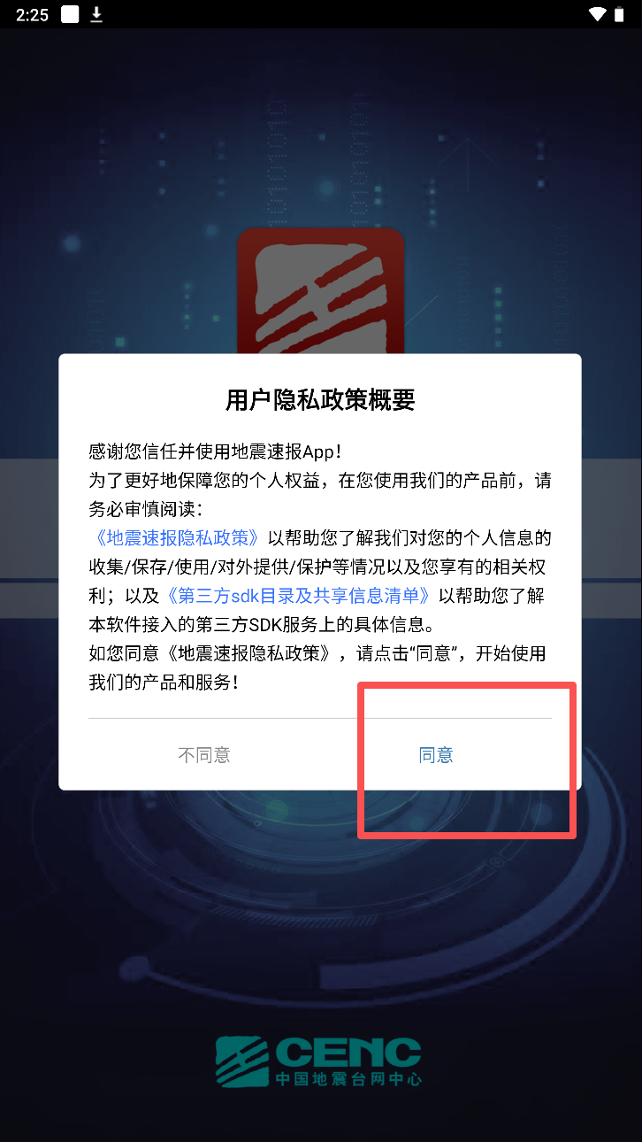 1、点击“同意”按钮,表示您已阅读并同意用户隐私政策概要。