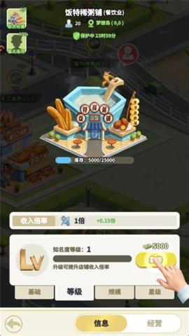 7、当店铺收入达到一定水平后,即可提升等级,解锁更多功能与收益。