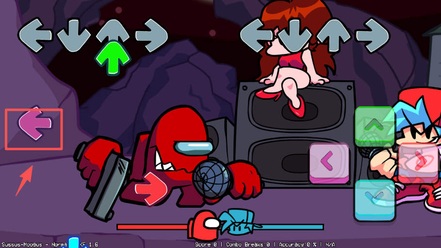 2、观察左侧下落的箭头,在它与左侧按键区域对齐时按下对应键,完成节奏操作。
