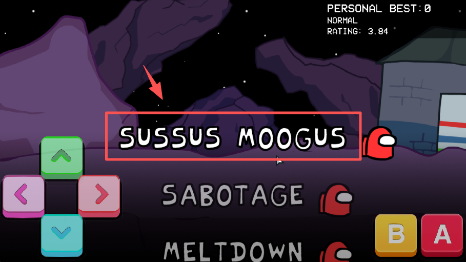 1、在关卡选择界面,选中 “SUSSUS MOOGUS” 选项,就能进入该曲目对应的对局。