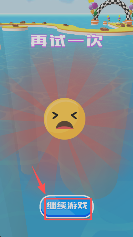 3、若游戏失败弹出 “再试一次” 界面,点击下方的 “继续游戏” 按钮,重新挑战当前的关卡 1。