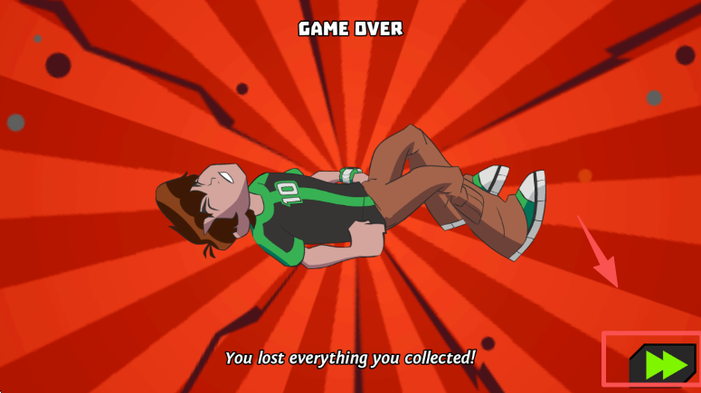 4、若游戏失败显示 “GAME OVER”,点击右下角的绿色按钮,重新开始游戏挑战。