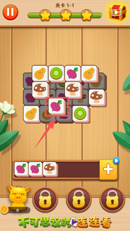 2、选择场地里的萝卜方块,将其移入展示栏,凑齐三个相同萝卜完成消除。