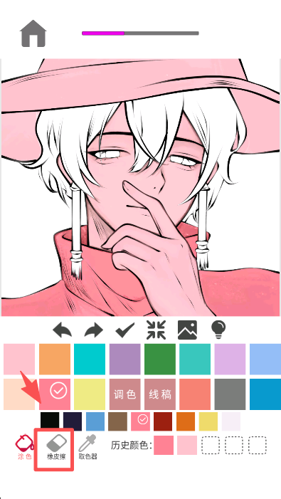 3、涂色过程中若填错,点击 “橡皮擦” 工具,可擦除错误区域的颜色重新填充。