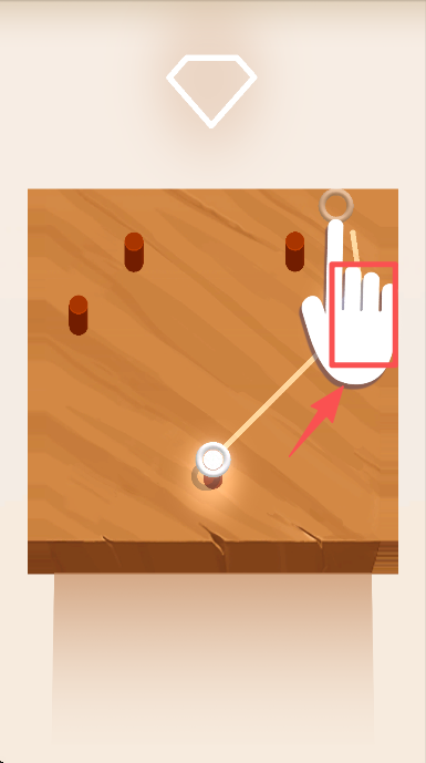 2、当绳索延伸到木板边缘后,点击下方的圆环,让绳索完成绕环的操作。