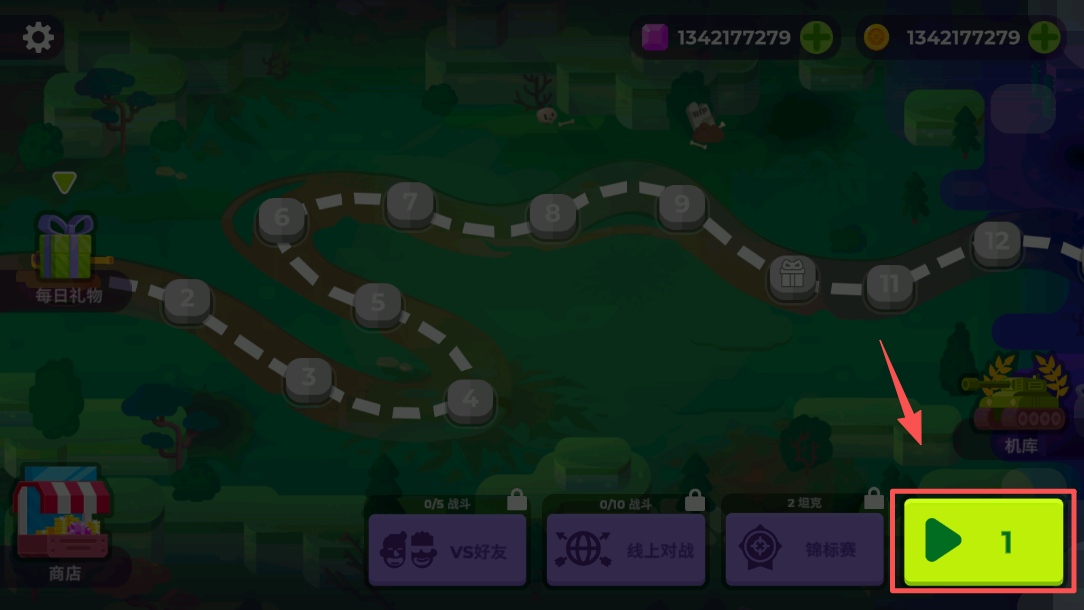 1、在游戏主界面,点击“1”按钮开始游戏。