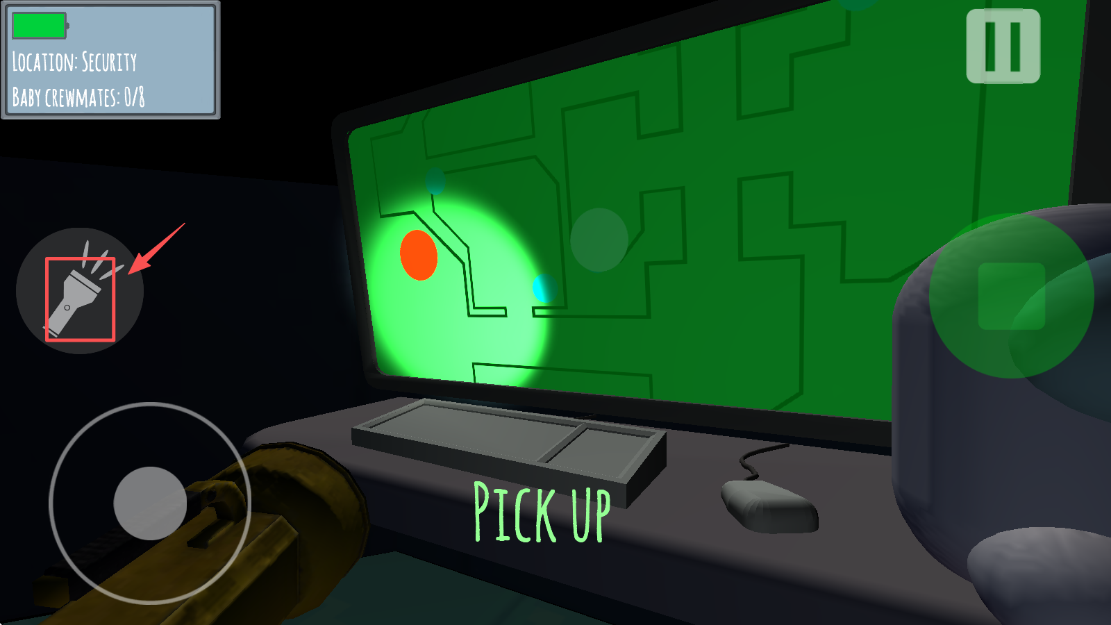 4、最后,跟随屏幕上的提示进行操作,例如点击“PICK UP”按钮拾取物品。