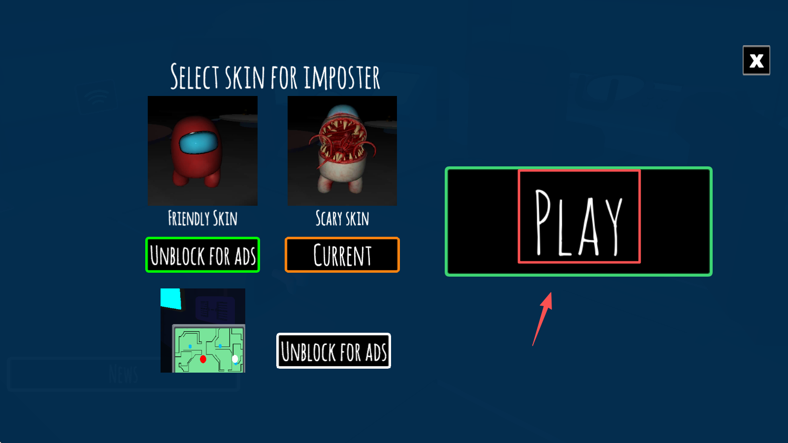 1、首先,点击“PLAY”按钮开始游戏,进入Imposter 3D的虚拟世界。