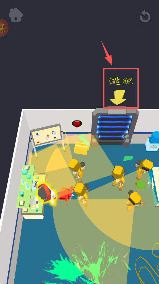 4、最后,找到并点击“逃脱”按钮,成功逃离实验室,完成关卡。