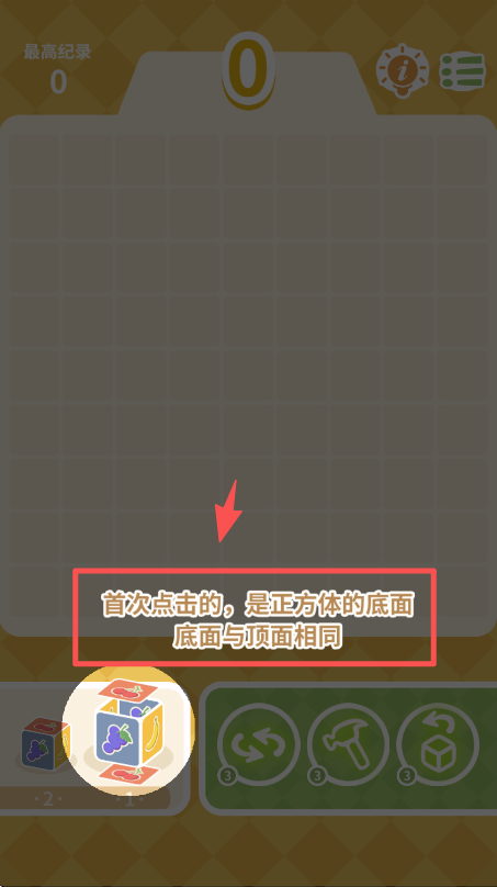 3、了解提示内容,明确首次点击的面是正方体底面,且底面与顶面的颜色是保持一致的。