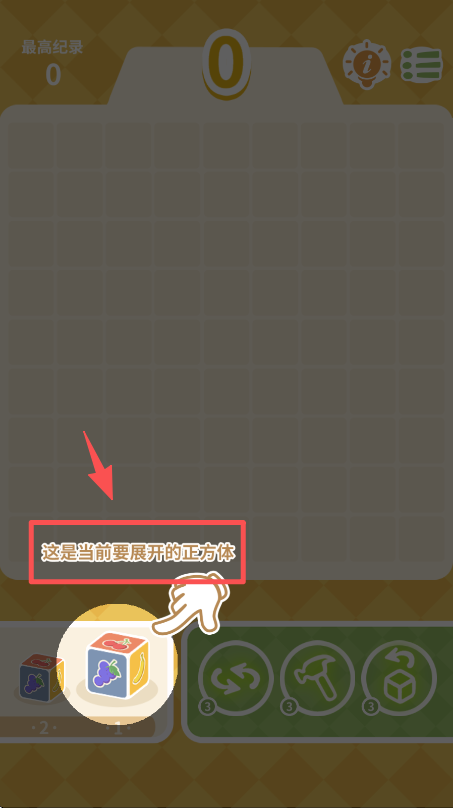 1、查看界面提示,确认当前需要进行展开操作的正方体,明确这是本次游戏的核心操作对象。