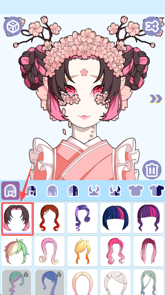 2、选择发型,点击左侧的发型图标,挑选你喜欢的发型。
