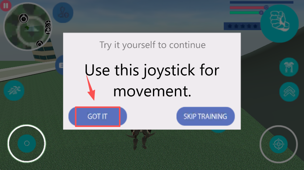 3、当提示出现时,点击“Got it”确认你了解如何操作摇杆移动。
