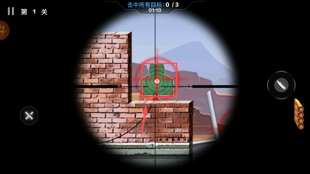 4、通过瞄准镜对准目标,点击射击按钮击中目标。