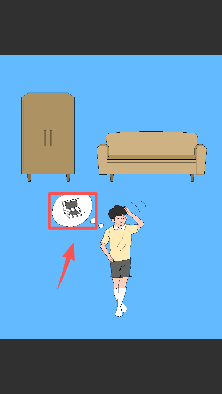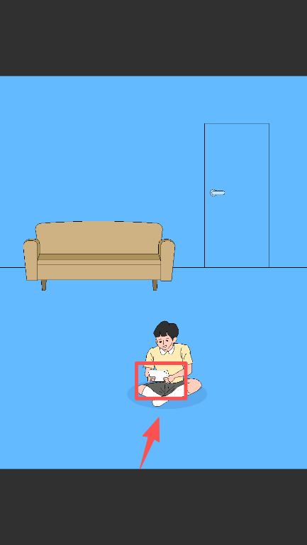 2、进入房间场景后,点击坐在地上的角色手中的物品,触发对应的互动操作。