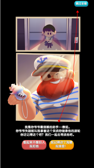 2、跳过剧情或接受任务。点击“跳过”可跳过剧情,或选择“我接受”开始任务。
