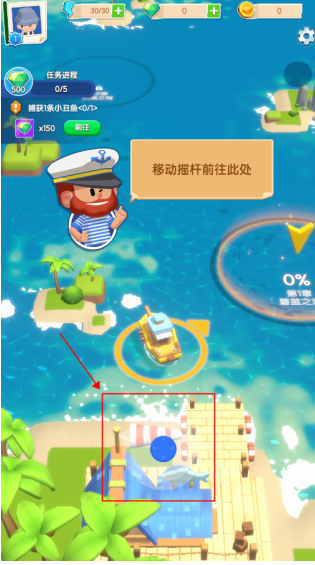 3、移动摇杆前往指定地点。根据提示,使用虚拟摇杆将角色移动到目标位置。