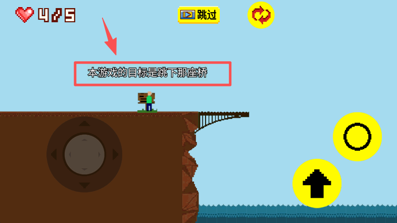 2、查看界面提示,明确本游戏的目标是让角色跳下对应的桥,按此目标继续操控角色。