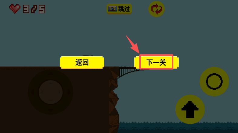 4、通关后点击界面中的黄色 “下一关” 按钮,进入跳桥游戏的下一个关卡进行挑战。