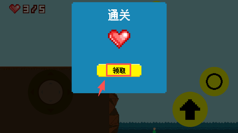 3、在通关弹窗里点击黄色的 “领取” 按钮,获取本次通关所对应的爱心奖励。