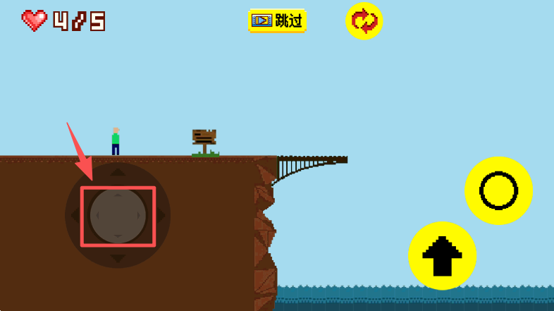 1、操控左侧的方向操作区域,控制角色朝着桥的方向移动,推进跳桥游戏的进程。