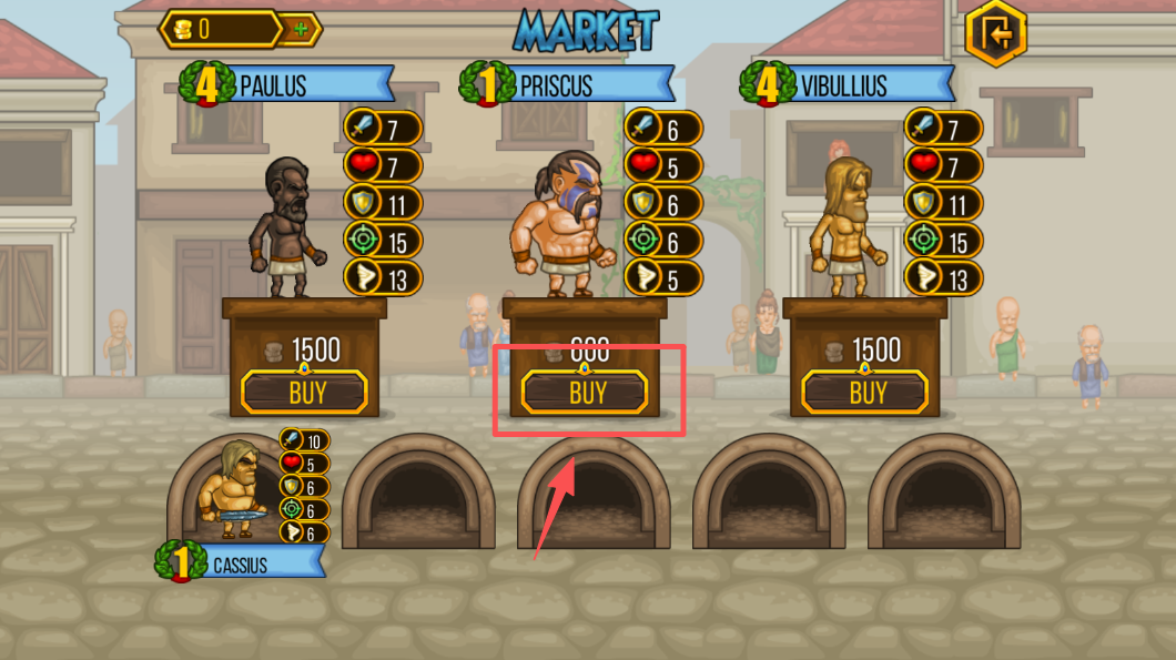 3、在铁匠铺中,选择装备并点击“BUY”购买,增强你的角色战斗力。