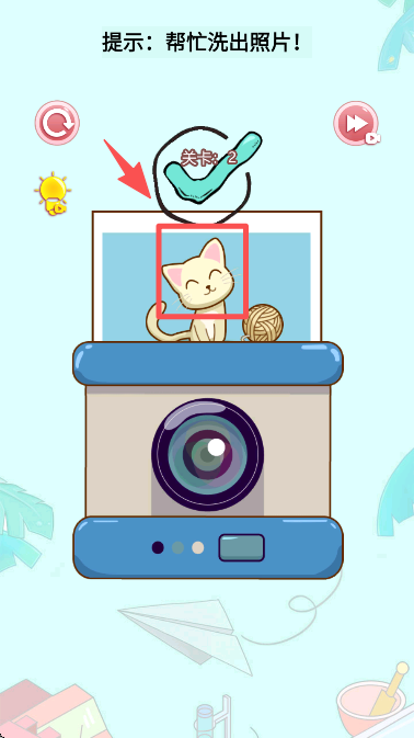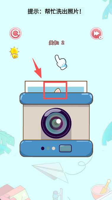 1、按照关卡 2 的提示,操作相机对应的区域,推进 “帮忙洗出照片” 的解谜流程。