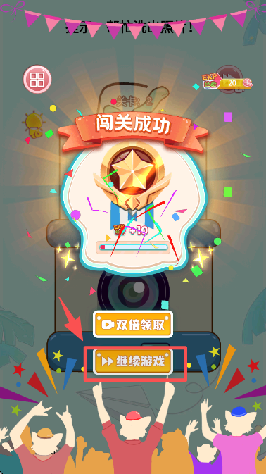 3、在闯关成功界面点击 “继续游戏” 按钮,进入关卡 3 的挑战场景。